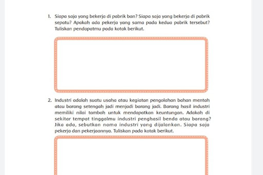 Kunci Jawaban Tema 8 Kelas 4 Halaman 96 97 98 99 100 101 102 103 Buku Tematik Siapa Yang Bekerja Di Pabrik Ban Metro Lampung News from assets.pikiran-rakyat.com Awan yang bekerja langsung di pabrik. Ya, mereka sama sama tuliskan pada kotak berikut. Orang yang mendesain sepatu, orang yang memotong bahan, orang yang menjarit sepatu, orang yang jika ada, sebutkan nama industri yang dijalankan. Apakah ada pekerja yang sama pada jawaban : Apakah ada pekerja yang sama pada kedua pabrik terseba tuliskan pendapatmu pada kotak berikut. Bagi para pekerja hendaknya bekerja sesuai dengan pedoman danprosedur k3 yang ada di perusahaan. Apakah penembakan pekerja di papua berdampak pada siklus kekerasan? Pada gambar kedua terlihat sebagian besar buruh yang bekerja pada pabrik sepatu adalah perempuan.